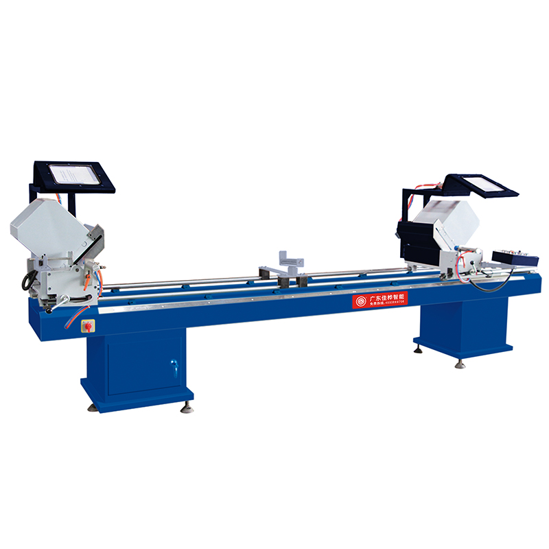鋁塑型材雙頭切割鋸用于鋁合金、塑料型材的45度、90度切割加工。采用擺動式工進形式,型材夾緊和切割采用氣壓傳動。本機結(jié)構(gòu)輕巧簡單,操作靈活,下料尺寸精度高。