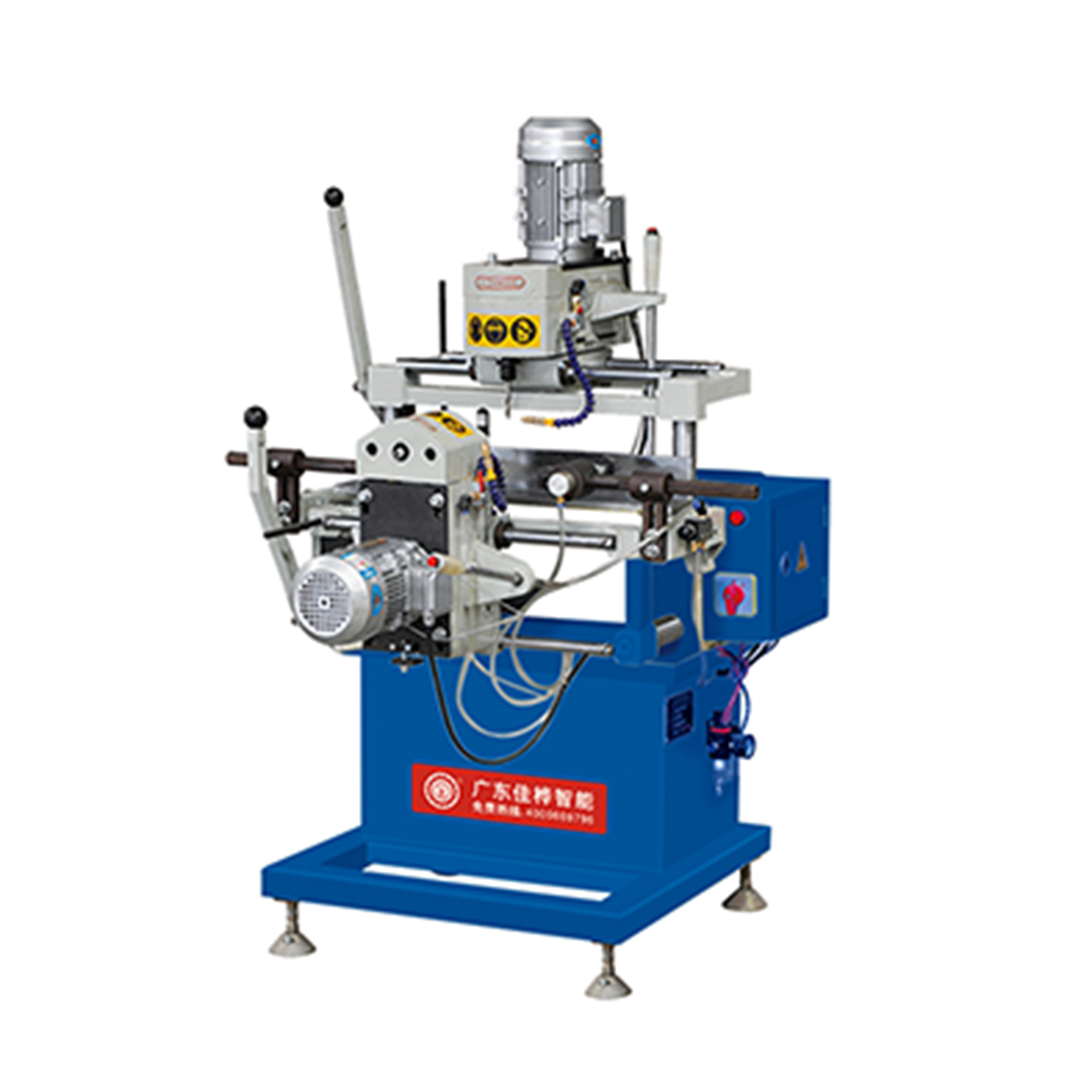 本機(jī)是用于加工鋁型材門窗排水槽、滑輪槽、鎖孔、五金件孔等各類孔槽的專用設(shè)備。更換不同的仿形板,可完成不同形狀的孔槽加工。采用高速切削(1200r/min)、氣動(dòng)夾緊、工作效率高、性能穩(wěn)定可靠。